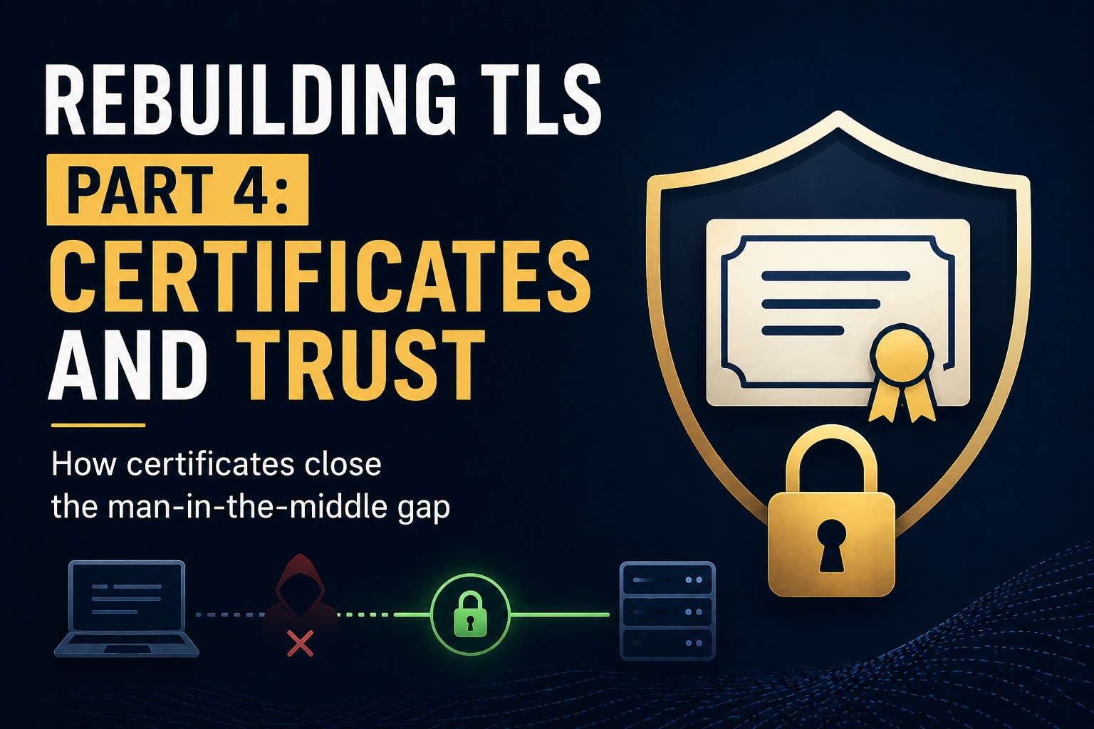 In this post we will discuss why key exchange is not the same as authentication, why certificates exist, how certificate chains work, and how I added a simplified certificate-based authentication layer to my small TLS-like protocol.